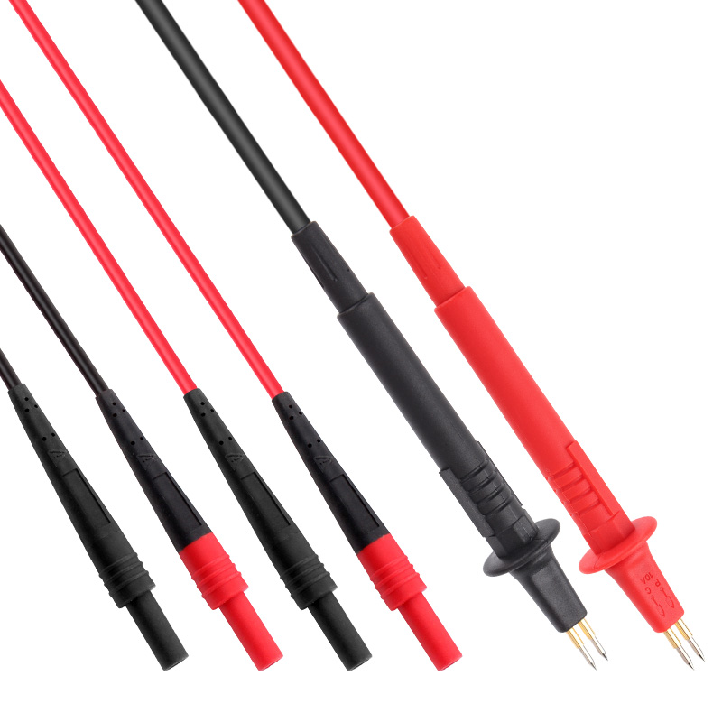 在測試微小電阻時,為了消除引線電阻對測量引起的誤差,ETA4555而采用開爾文法四線檢測,測針部位為4點伸縮探針,雙排形狀設計,探針鍍金處理可穩定電流的通過,減輕探針使用環境的腐蝕侵擾提高耐久性和抗磨損,4mm標準香蕉插頭可以用在具有4線電阻測量功能的儀器如:微歐姆表、臺式萬用表、電池內阻測試儀等,能在生產線、驗收檢測等各種現場輕松使用。