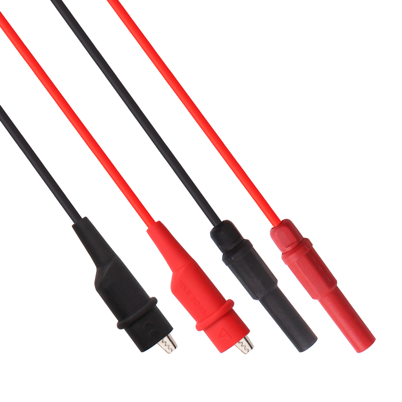 ETA4518雙插轉雙夾線,一端插頭為直型公插,另一端為鱷魚夾,鱷魚夾為不銹鋼導體,全封閉硅膠護套,測試導線采用多股鍍錫銅線,外包硅橡膠絕緣層,標準插頭兼容具有4mm插頭的儀器使用,廣泛應用于教學儀器、電工電力測試儀器、汽車測試儀器、醫療儀器等。